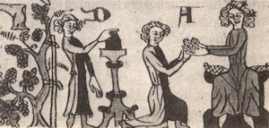 Quanto al valore terapeutico del vino, si tratta di una “virtù” unanimemente ammessa. La medicina medievale – basti pensare al Regimen Sanitatis della Scuola Salernitana – ne faceva ampio uso come base per la preparazione di molti farmaci. Ma farmaco era, in un certo senso, il vino stesso, che per il suo contenuto in alcool era una bevanda igienicamente sana e funzionava da antisettico. Il vino quindi era indispensabile, puro o diluito, nei luoghi in cui si aveva solo acqua di pozzo o di cisterna, che facilmente era inquinata, specie d’estate. Non solo: con il vino si produceva l’aceto, indispensabile per sterilizzare qualsiasi liquido e per la conservazione di innumerevoli prodotti alimentari.