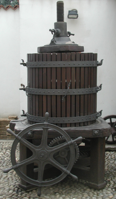Proviamo ad immaginare un vigneto in una ancora calda giornata di settembre. Le viti sono ben ordinate, cariche di uva, gli acini sembrano ben maturi, pronti per essere raccolti. Il contadino passa tra i suoi filari, osserva, controlla. Poi decide. Da domani inizierà il rito festoso della vendemmia che porterà tutti o gran parte di questi grappoli a divenire buon vino.Prima di arrivare a questo momento, però, il contadino ha lavorato per tutto l’anno per permettere una sana crescita della vite. Durante l’inverno ha tagliato e potato i tralci per rinforzarli; in primavera ha zappato e rimosso la terra intorno alle piante; in estate ha irrorato più volte le viti con solfato di rame per proteggerle dai parassiti. Finalmente è arrivato il momento della raccolta. I grappoli vengono tagliati con cesoie e raccolti in ceste o panieri, a seconda della quantità. Alcuni di questo cesti possono essere portati più comodamente sulle spalle (le brente) e permettono di trasportare l’uva fino ai recipienti per la pigiatura: i tini. In genere questa operazione veniva svolta nel modo più tradizionale: coi piedi nudi. È un metodo non più usato, ma decisamente folcloristico, specialmente per certi aneddoti che vogliono, ad esempio, la proibizione di lavarsi i piedi per paura di annacquare il vino. Se le quantità di vino sono piccole può capitare che vengano pigiate addirittura nella vigna, all’interno delle brente, mediante un ammostatoio di legno. La pigiatura più moderna è tuttavia eseguita dalla macchina pigiatrice. Viene posta sul recipiente di fermentazione ed è formata da un supporto orizzontale in legno, in fondo al quale sono montati due rulli scanalati che vengono fatti girare l’uno verso l’altro con una manovella. L’uva così schiacciata cade direttamente nel recipiente sottostante. Se il recipiente di pigiatura è anche quello di fermentazione, sia il mosto che le vinacce restano insieme. Se invece l’uva pigiata deve essere travasata in un altro recipiente i due componenti vengono divisi, anche se di regola far fermentare il mosto con le vinacce contribuisce a rendere il processo più semplice e spontaneo e a dare al vino il giusto colore. Il tempo di fermentazione può variare a seconda del tipo di vino, da località a località e dal metodo. Generalmente avviene all’interno di grossi tini o di botti lasciate scoperte in modo da permettere la "bollitura" del mosto. |